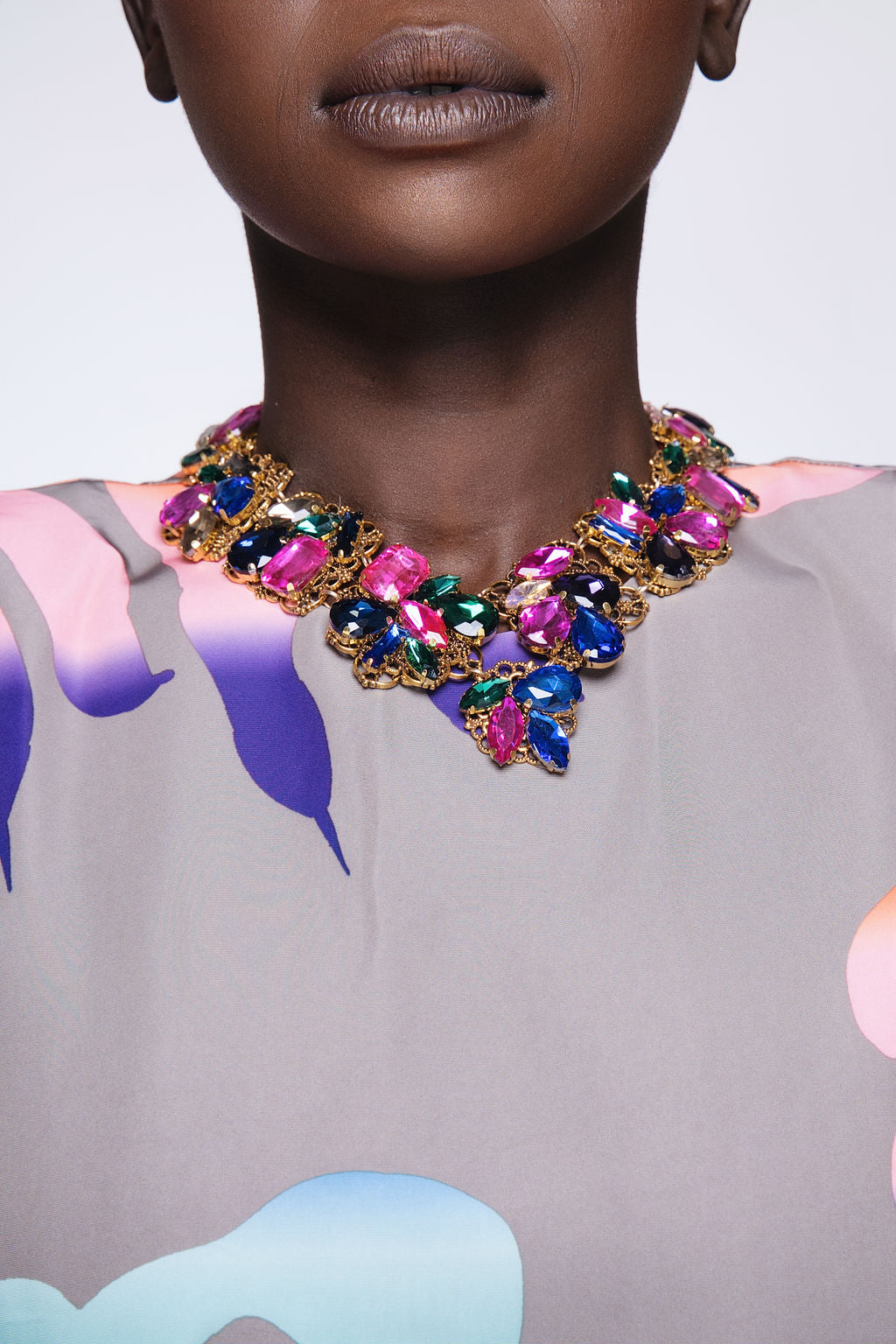 Gorgeous, colorful jewels set in gold tones define this statement collection. Daring yet timeless, emerald, cyan, fuchsia and lavender combine to make magic in these pieces that demand to be seen and bring the drama.