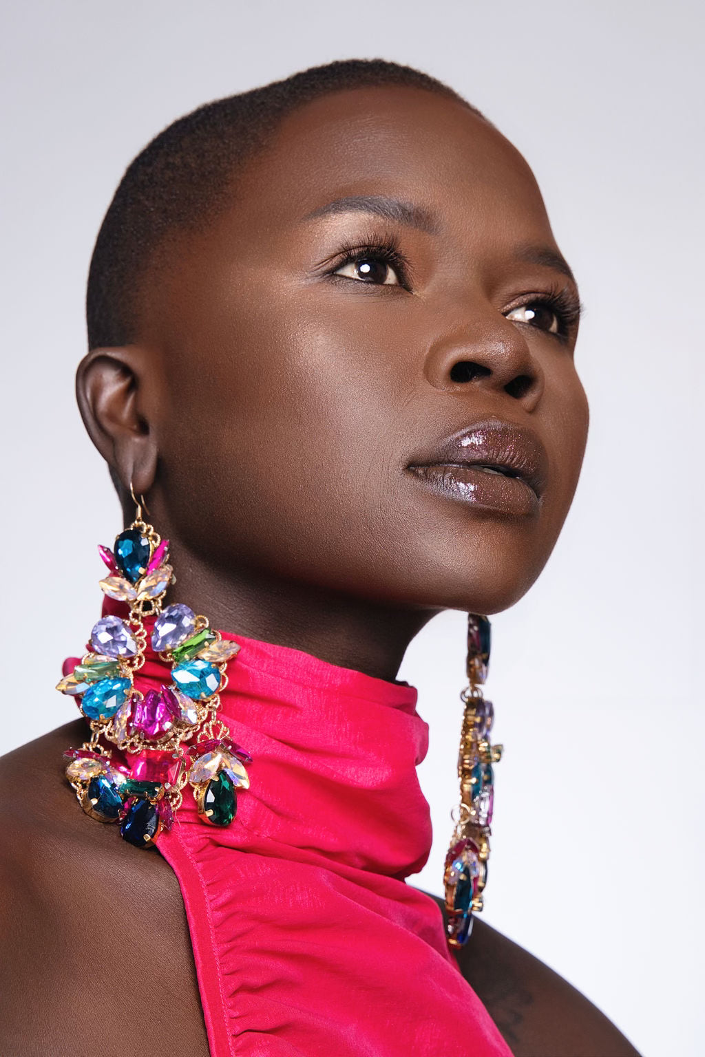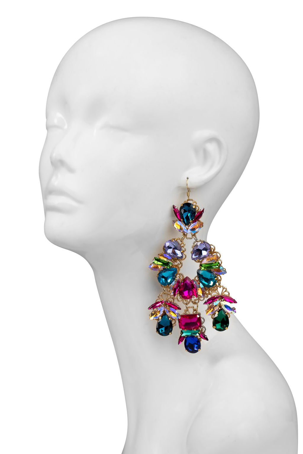 Gorgeous, colorful jewels set in gold tones define this statement collection. Daring yet timeless, emerald, cyan, fuchsia and lavender combine to make magic in these pieces that demand to be seen and bring the drama.