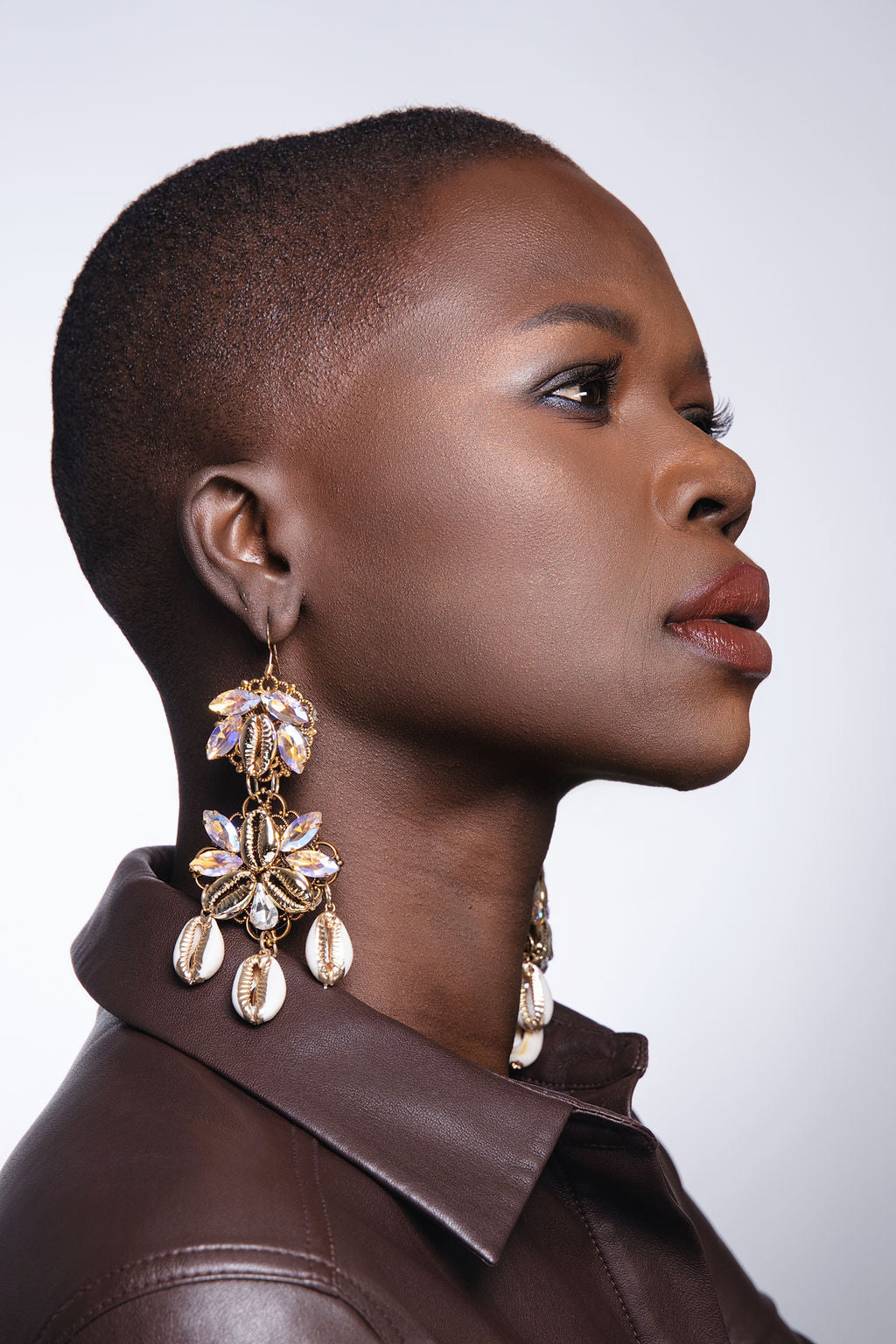 Lavish in luxury in the Cowrie shell collection, thought to represent wealth and prosperity. Gold dipped and set among spectacular gold hardware, pearls and clear crystals make these pieces shine so that you will be the center of every conversation.